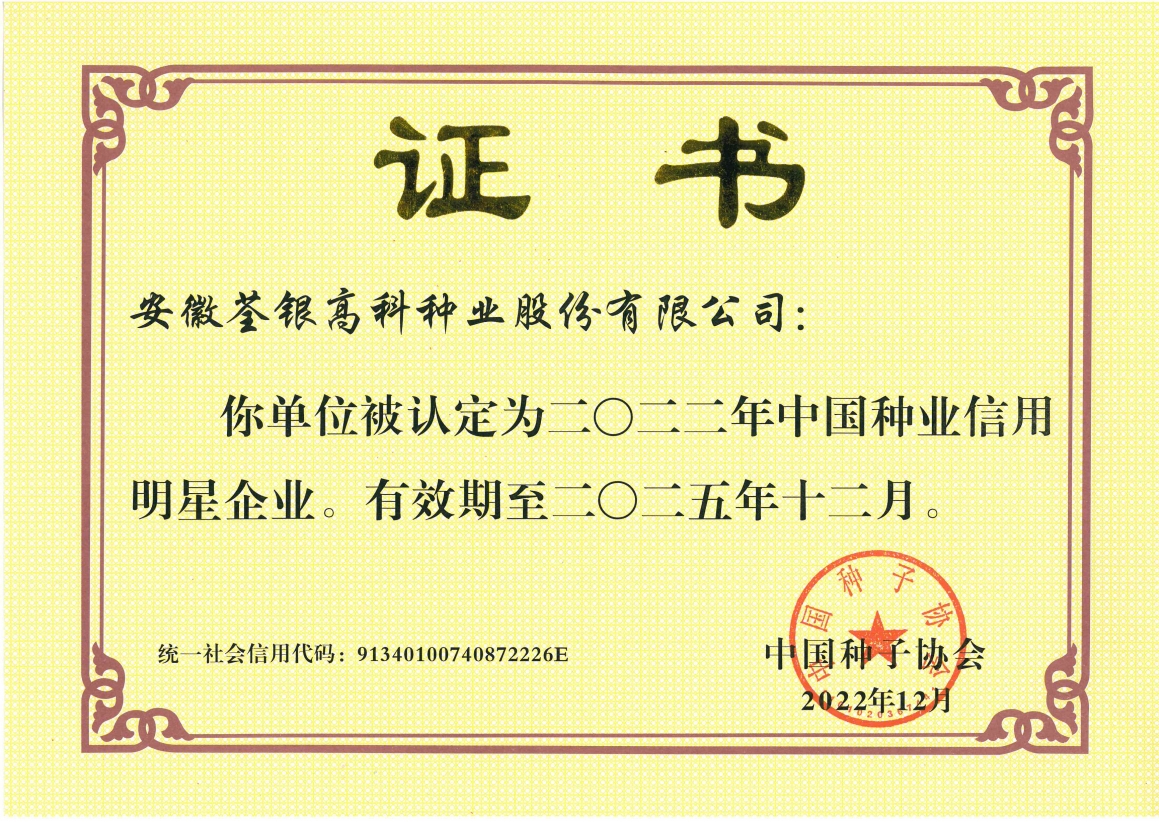 安徽荃銀高科種業(yè)股份有限公司是一家“以種業(yè)為核心、農(nóng)業(yè)服務(wù)為延伸、探索和創(chuàng)新農(nóng)業(yè)多元化發(fā)展”的現(xiàn)代高科技種業(yè)上市公司,證券代碼:300087。公司注冊資金9.47億元,系“中國種業(yè)領(lǐng)軍企業(yè)、農(nóng)業(yè)產(chǎn)業(yè)化國家重點龍頭企業(yè)、國家高新技術(shù)企業(yè)、農(nóng)業(yè)部首批農(nóng)作物種子育繁推一體化企業(yè)、中國種業(yè)信用明星企業(yè)"。在國內(nèi)控股子公司20多家,在國外設(shè)立分支機構(gòu)4家,良種銷售至全國20多個?。ㄊ小^(qū)),出口覆蓋20多個國家與地區(qū),種業(yè)綜合實力、雜交水稻研發(fā)、推廣及海外業(yè)務(wù)規(guī)模均居全國種子企業(yè)前2位。